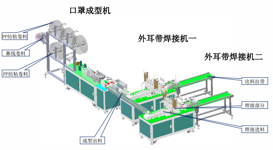 高速平面耳帶式口罩生產(chǎn)線(一拖二)外觀圖
