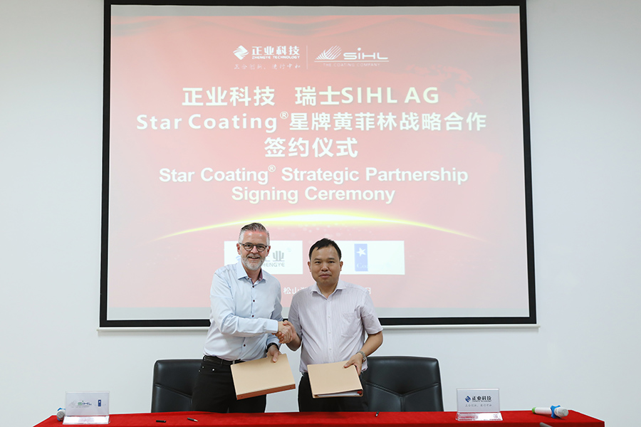 6月23日上午,廣東正業科技股份有限公司(股票代碼:300410)與業內知名公司瑞士SIHL AG 旗下Star Coating® 星牌黃菲林繼續簽訂戰略合作協議,進一步深化加強合作,共同擁抱中國電子信息市場的巨大機遇。